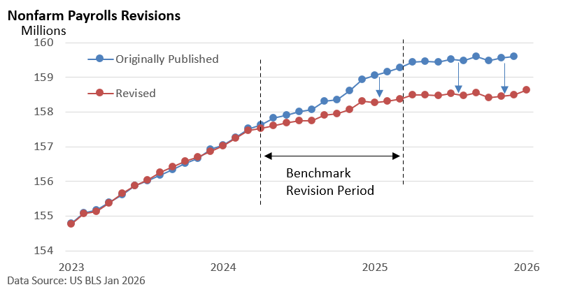 The US Bureau of Labor Statistics published its final benchmark revisions covering employment during the 12‑month period between April 2024 and March 2025. The revisions showed that payrolls were revised lower by 898,000 jobs compared with the originally reported figures. The 898,000 reflects the total number of jobs overstated once the BLS incorporated more complete Quarterly Census of Employment and Wages payroll-tax data. These counts are derived from state unemployment insurance tax records that nearly all employers are required to file.