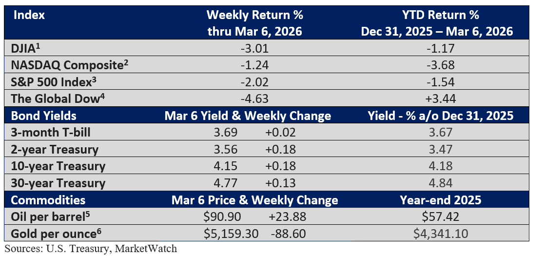 Investors are reacting to economic uncertainty stemming from oil disruptions, along with the possibility of higher inflation and slower economic growth. But not all assets considered a “safe haven” gained ground last week. Let’s review the table below.