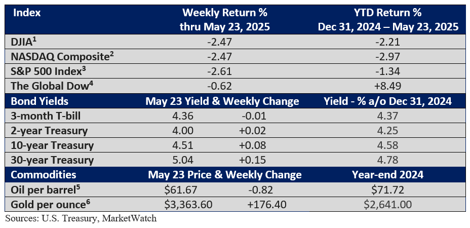 Discussions of U.S. exceptionalism in the stock market stem from the consistent outperformance of major U.S. indexes compared to global markets. For example, over the past decade, the Global Dow is up about 103%, while the S&P 500 Index has risen by 180%, according to S&P Global (excluding reinvested dividends, April 30, 2015 – May 22, 2025).