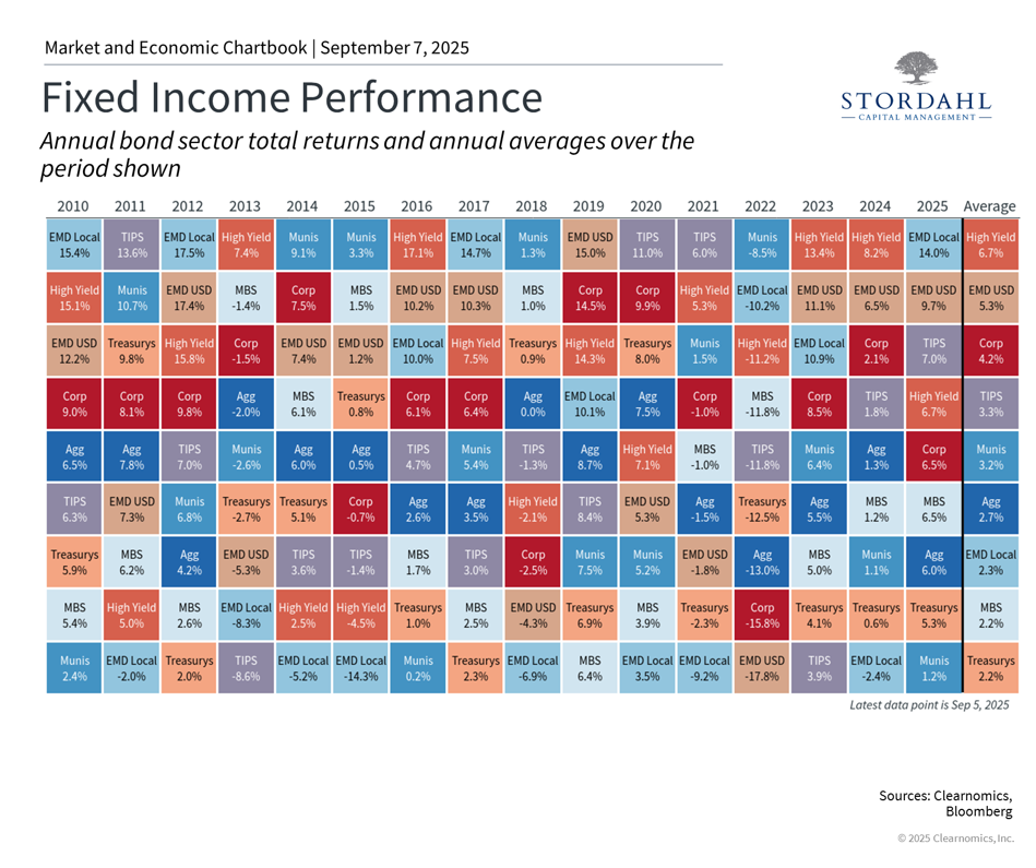 Expected Fed rate cuts carry significant implications for all market participants. Historically, declining policy rates support bond valuations, as existing higher-yielding securities become more attractive. Additionally, rate changes and market volatility have benefited diversified fixed income allocations. These dynamics have contributed to the U.S. Aggregate Bond Index generating 4.8% total returns year-to-date.